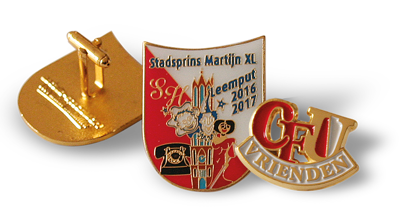 Ook voor pin's of speldjes, subtiel aanwezig op het rever van uw kleding, of fraaie manchetknopen, kan de medaille-specialist u van